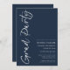 This is a minimalist and modern graduation party invitation. It is a simple and stylish handwritten script design in classic blue and white. Please contact the designer for any queries about this design.