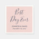 Elegant navy blue and blush wedding paper napkins with a modern script font. Matching items available.
