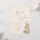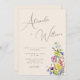 This modern boho floral wedding invitation features a minimalist design focused on the names of the bride and groom in a delicate whimsical script font. It is decorated with a bouquet of colourful watercolor wildflowers, and has a beige background. Please check out the collection for the rest of the matching wedding invitation suite and more matching products.