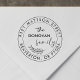 This beautifully designed stamp features two concentric circles, framing your custom address in a clean, modern layout. Inside, stylish modern script text enhances the design with a refined, personal feel. Your family name takes centre stage in bold, flowing lettering, making it the focal point of this timeless piece. At the bottom, a delicate hand-drawn leaf illustration adds a touch of botanical beauty, completing the look with a natural, artisanal touch.