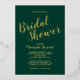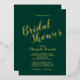 featuring title "Bridal Shower" in real gold foil modern script font with details in real gold foil modern sans serif font on emerald green background.