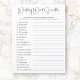 This minimalistic script Word Scramble game is the perfect way to celebrate your bridal shower in style. Features a simple design, plus modern typography. Answer Key: 1. bridesmaid, 2. reception, 3. marriage, 4. bouquet, 5. first dance, 6. invitation, 7. husband, 8. groom, 9. groomsmen, 10. honeymoon, 11. wife, 12. bridal shower, 13. save the date, 14. kiss the bride, 15. love, 16. married, 17. engaged, 18. bride to be, 19. tie the knot, 20. wedding bliss. You can personalise this design by clicking on "Personalise this template" or if you wish to change the font, background colours or arrange the design elements in a different way you can click on "Edit using Design Tool".