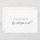 This modern script bridesmaid proposal card is perfect for a minimalist wedding. The simple black and white design features unique industrial lettering typography with modern boho style. Customisable in any colour. Keep the design minimal and elegant, as is, or personalise it by adding your own graphics and artwork. Customise the card with the name of the bride and the bridesmaid. Personalise the back of the card with a personalised message.