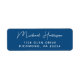 Classic blue return address label featuring your name showcased in a stylish modern white signature script for your personal, business or special event correspondence.