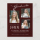 Modern 3 photo graduation announcement postcards. This custom design combines handwritten, calligraphy style script with modern text in white and light grey on a stylish burgundy red background. The back of the design offers customisable text fields for your announcement and graduates information. To see more items like this, visit my store here at "www.Zazzle.com/LakeViewCardCo". Thanks