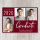 Announce your graduate’s achievement in bold, contemporary style with this striking photo graduation announcement featuring a rich burgundy red background and elegant white script typography. Designed to make a statement, this layout pairs multiple senior portraits with a large handwritten-style “Graduate” headline -- creating a polished, magazine-worthy look perfect for celebrating your grad. The clean multi-photo arrangement highlights your favorite senior pictures, from formal portraits to relaxed lifestyle shots, while the strong color block background adds school-spirited sophistication.