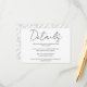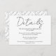 Modern script calligraphy black and white wedding enclosure card. An elegant minimal black and white wedding design with the word "Details" in script calligraly. The back includes a black and white pattern of your names. Please note that if your names on the back take more or less space customise it to increase or decrease the text size accordingly.