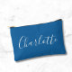 Modern Script Calligraphy Name Simple Bright Blue Accessory Pouch