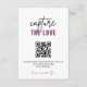 Elevate your wedding memories with our Script Capture The Love QR code Wedding Photo Share QR Code Encolosure Card. This beautifully crafted sign features delicate calligraphy, adding a touch of sophistication to your special day. Personalise it with your names and wedding date. Ideal for reception tables, gift tables, or as a keepsake. Order now to create lasting memories!