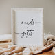 Show baby shower guests where to leave their cards and gifts with this simple and elegant table sign, featuring a modern script with heart flourish.