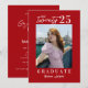 This chic trendy red coloured modern minimal graduation party invitation features both script and sans serif typography. This pairing of flowing script and modern sans serif creates a stylish balance, with the script adding sophistication and the sans serif ensuring clarity and readability. Upload your favourite photo.