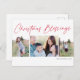 Modern Script Christmas Blessings Three Photo Holiday Postcard
