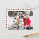 A modern Christmas greeting card with white lettering and a family photo. Feel free to personalise the text and image.