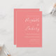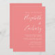 This simple modern wedding invitation features white text on a coral pink background. Add the names of the bride and groom in stylish handwriting calligraphy and the details in sans serif font. The reverse side provides space for wedding details on a solid coral background, along with a QR code guests can scan to visit your website and RSVP, which saves the cost of printing and mailing separate RSVP cards.