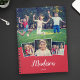 Unique custom gift with 4 favourite photos in a modern photo collage notebook with your name in a trendy hand written script and year below on a red backdrop. Sweet little personal gift for teens, kids, or grandparents!