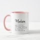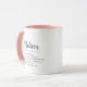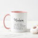 Tell your bestie how well you know her with this super sweet and cool custom name definition mug! Does she love coffee? Is she a total zombie aficionado? A devoted knitter? Tell her what makes her special in your eyes with this modern script calligraphy name mug in stylish black and white on pink (or any other interior colour you choose from the options).