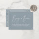 Oh baby natural dusty blue modern elegant script baby shower bring a book card. Part of a collection.