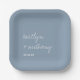 Modern Script Dusty Blue Minimalistic Wedding Paper Plate
