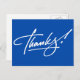 Modern handwritten script Thank You postcards in Electric Blue. Perfect for Weddings, Birthdays, Christmas, Showers or any other occasion. Electric Blue colour 'Thank You' postcards, if required, choose any other colour or add your own printed text, address or company name from the "Customise It" tab.