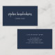 These minimalist, elegant dark navy blue business cards feature modern script typography paired with simple and professional matching white text.