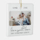 This modern script photo HOME SWEET HOME ornament features two of your favourite photos (on the front and back) of your new home as well as your family name. This stylish keepsake for new homeowners will remind you of your big moving day for decades to come.