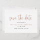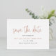 Modern typography Save the Date Card featuring a simple design with "save the date" and your names in an elegant script font, printed in real rose gold foil. A chic and stylish design to announce the date of your upcoming wedding.