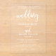 Modern minimalist wedding invitation features elegant script on a beautiful acrylic card.