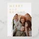 This holiday card features a simple, elegant design and an arched photo. This gorgeous modern minimal Christmas card allows a section to upload your own perfect picture to the font.