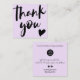 Modern minimalist black and soft pastel purple lavender business order thank you brush script font with a heart. Add your social media. With an elegant signature script font, all the colours are editable , add your logo.
