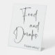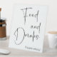 This minimalistic script Food and Drinks Pedestal Sign is the perfect way to celebrate your bridal shower in style. Features elegant and modern typography. You can personalise this design by clicking on "Personalise this template" or if you wish to change the font, background colours or arrange the design elements in a different way you can click on "Edit using Design Tool".