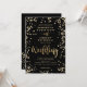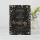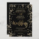 Modern yellow gold foil confetti glitter black wedding invitation with an elegant script calligraphy brush.