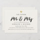 This minimal engagement party invite shines through its simplicity. Elegant Hand-drawn script reads "The Future Mr. and Mrs" alongside your personal celebration details in modern typography. Above sits a delicate faux gold heart.