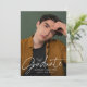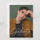 Celebrate your graduate's achievement in style with this modern and minimalist graduation party invitation. The design features your vertical senior photo with “Graduate” elegantly displayed in a white handwritten script overlay, creating a sleek and sophisticated look. Personalise the front with your name, school, and graduation year for a unique touch. The back showcases a horizontal photo with all your graduation party details displayed below. Perfect for high school and college graduates, this simple yet stylish invitation is a timeless way to invite friends and family to celebrate your big day.