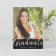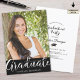 Invite guests to your graduate's graduation party with this photo invitation featuring one photo and elegant calligraphy script typography in your choice of background colour (shown with white text on an editable black background). Party details are on the back. ASSISTANCE: For help with design modification or personalisation, transferring the design to another product or if you would like coordinating items, contact the designer BEFORE ORDERING via the Zazzle Chat MESSAGE tab or email makeitaboutyoustore@gmail.com.