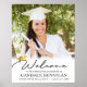 Celebrate your graduate and identify the party location and welcome guests with this modern photo display sign in black and white featuring a modern handwritten script typography WELCOME accented with a faux metallic gold foil graduation cap and personalised with your custom text, graduate's name, school and class year against white background. OPTIONS: The sample is shown in a 16x20" size on Value Paper (Matte); other standard and custom print sizes, paper quality and framing, Instant Digital Download file for printing locally or transferring the design to a foam board, banner, canvas or other product options are available on the ordering page. RESIZING TIP: Choose Custom Size for even borders by changing the height and width proportionately AFTER clicking the UNLOCK icon (looks like a chain link). ASSISTANCE: For help with design modification or personalisation, colour change, resizing or transferring the design, contact the designer BEFORE ORDERING via the Zazzle Chat MESSAGE tab or email makeitaboutyoustore@gmail.com.