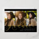A playful but simple script graduate in foil sits at the bottom of 3 vertical photos. The custom text includes room for the graduate's name and also school and year details. The neutral black backer has a simple grid pattern, and the colour can be changed by clicking "customise further." The centre has room for graduation party invitation text or it can be left blank. Announce your graduate's accomplishment to friends and family with this design!