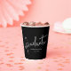 A Modern Script Graduate Simple Graduation Paper Cups with handwritten font, name and graduation details. Click the personalize/edit with design tool button to customize this design.