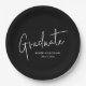 A Modern Script Graduate Simple Graduation Paper Plates with handwritten font, name and graduation details. Click the personalize/edit with design tool button to customize this design.