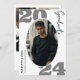This simple and attractive graduation announcement reads "graduate" in delicate, white, elegant modern font and features your favourite personal photo on the front. The back can contain additional information about the graduate, which will be presented in a minimalist black and white design.