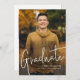 A Modern Script Graduate Simple Photo Graduation Invitation with handwritten font full bleed portrait photo on the front with name and graduation details. The back has a second photo with party details. Click the edit button to customise this design.