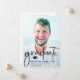 Elegant 2024 graduation announcement features two photos of the college or high school graduate. Graduation Announcement card with handwritten font full bleed portrait photo on the front with name and graduation details. The back has a second photo with additional details. Click the edit button to customise this design.