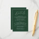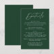 Simple and elegant wedding details card featuring a handwritten white script mixed with modern lettering against a dark green background. Personalise the minimalist wedding details card with your wedding details such as reception information, hotel accommodations, wedding website, etc. The chic forest green wedding details card is perfect for modern weddings.