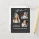 Modern 3 photo graduation announcement postcards. This custom design combines handwritten, calligraphy style script with modern text in white and light grey on a stylish dark grey background. The back of the design offers customisable text fields for your announcement and graduates information. To see more items like this, visit my store here at "www.Zazzle.com/LakeViewCardCo". Thanks