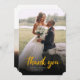 A great and thoughtful way to thank your friends, family, and coworkers who graced you their presence on your your wedding day with this modern photo thank you cards with script hand lettered gold effect "thank you". Photos on both the front and the reverse of this card