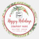 Modern script Happy Holidays red holly logo Classic Round Sticker
