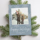 Create your own personalised holiday card with your custom photo in a minimalist design with modern calligraphy script typography and snowflakes design background.