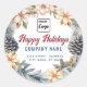 Modern script Happy Holidays wreath logo Classic Round Sticker