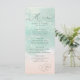 Beautiful turquoise abstract watercolor sparkling ocean wave and hearts in the sand beach background, toped with stylish script and elegant serif font, modern and simple. Great wedding menu cards for nautical beach wedding, tropical destination wedding, coastal ocean themed wedding in summer.