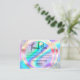 say big thank you and show your love and customer appreciation with this modern script card with the heart and holographic background, inviting them to purchase again, leave a review and tag you on social media. You can change the colours of the heart, text and icons to fit your branding