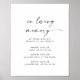 This modern script in loving memory wedding memorial sign is perfect for a minimalist wedding. The simple black and white design features unique industrial lettering typography with modern boho style. Customizable in any color. Keep the design minimal and elegant, as is, or personalize it by adding your own graphics and artwork.